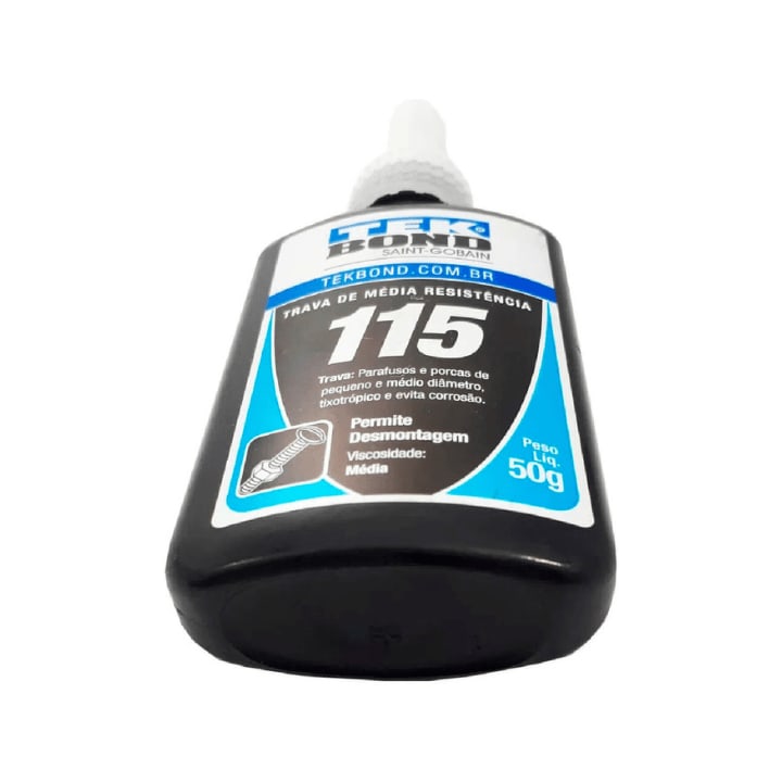A trava rosca 115 azul 50g - tekbond é um adesivo anaeróbico de resistência média, formulado para fixar e vedar componentes metálicos roscados, como parafusos, porcas, prisioneiro… A trava rosca 115 azul 50g - tekbond é um adesivo anaeróbico de resistência média, formulado para fixar e vedar componentes metálicos roscados, como parafusos, porcas, prisioneiros e conexões.